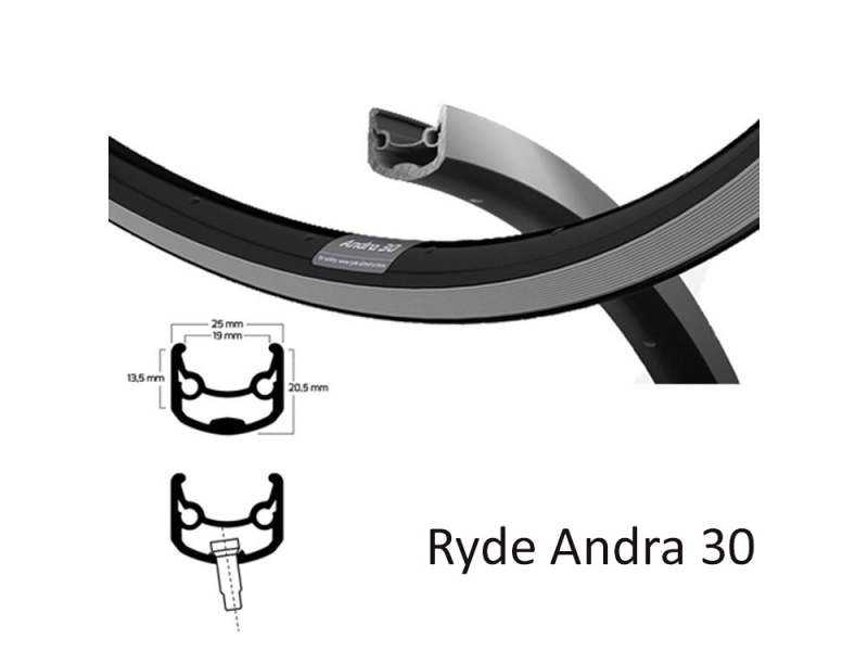 Felge 28'' 19-622 RYDE Andra30 schwarz 36 Loch o.Ösen seitlich geschliffen VL6,5 gepunzt