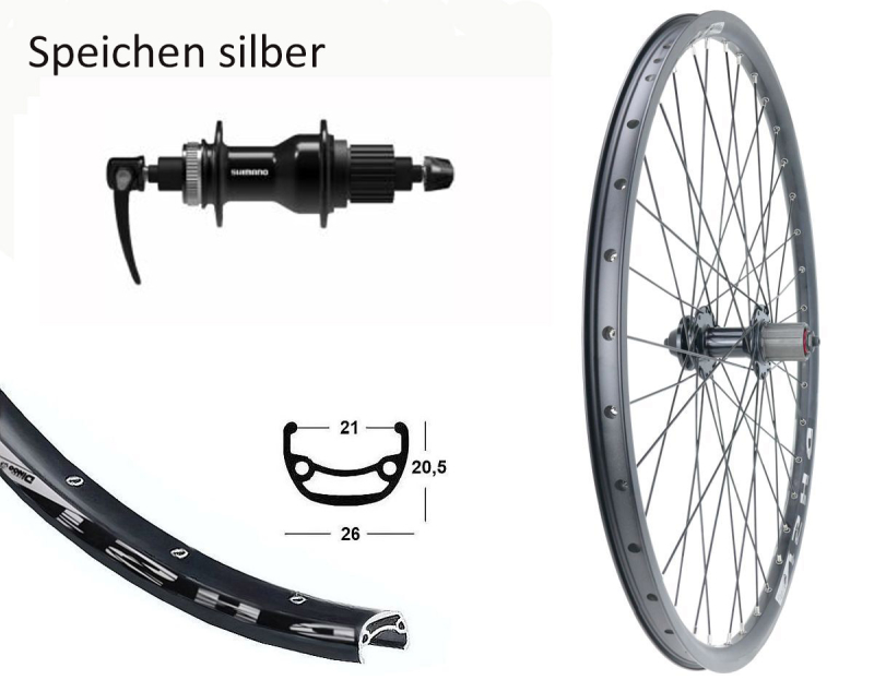 BW 27,5" H-Rad BDCP DH21 schwarz Disk mit Ösen 36Loch, Shimano QC500 Disk Centerlock 12-fach Microspline Schnellspann schwarz, Speichen Niro silber