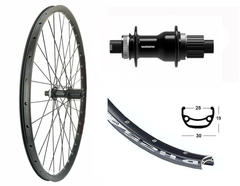 BW 27,5" H-Rad BDCP DH25 schwarz Disk mit Ösen 36Loch, Shimano TC500 Disk Centerlock EBB 148mm für Steckachse 12mm 12-fach Kassette Microspline schwarz, Speichen ED 2/2,3mm schwarz