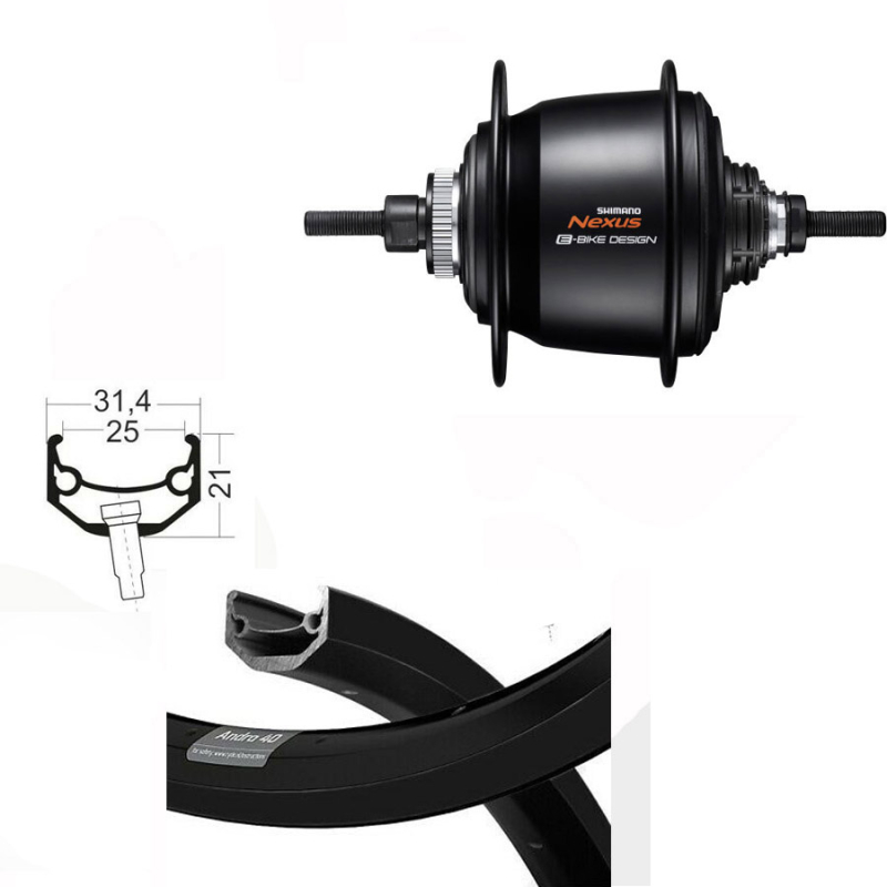 BW 20" H-Rad 25-406 Ryde Andra 40 schwarz Disk ohne Ösen gepunzt 36Loch, Shimano Nexus 5-Gang Freilauf Disk Centerlock schwarz ohne Zubehör, Speichen Niro schwarz