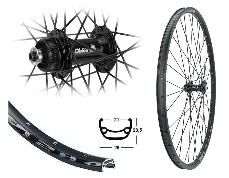 BW 24'' V-Rad 21-507 BDCP DH21 schwarz Disk mit Ösen 36Loch,. BDCP MT818 Disk Centerlock Schnellspann schwarz, Speichen Niro schwarz