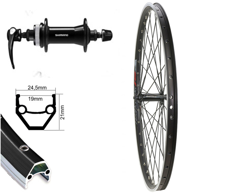 BW 26'' V-Rad 19-559 BDCP DMS19 schwarz mit Ösen 36Loch,Shimano QC300 Disk Centerlock Schnellspann schwarz,.Speichen Niro schwarz