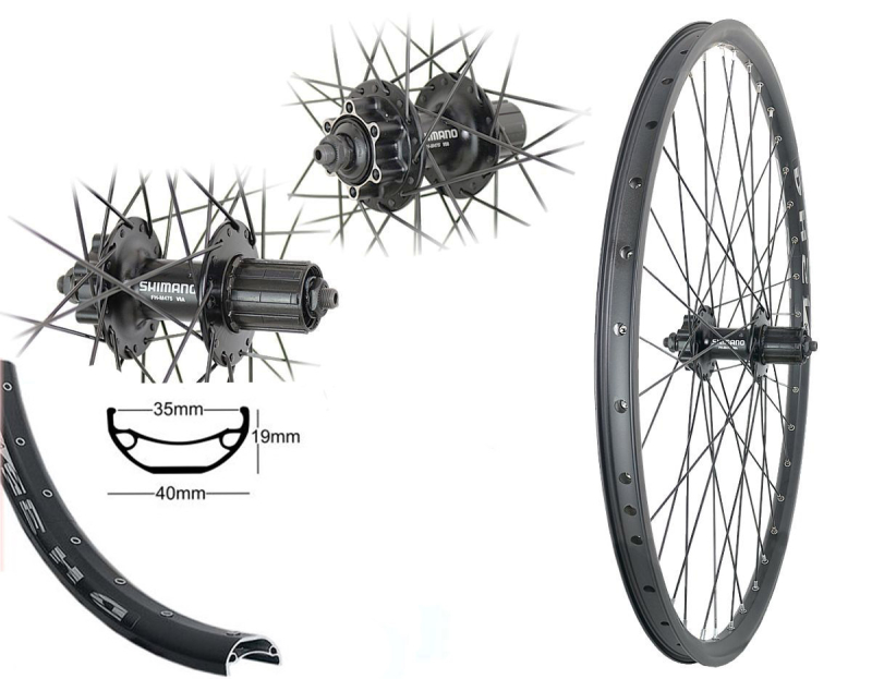 BW 27,5'' H-Rad 35-584 BDCP DH35 schwarz Disk mit Ösen 36Loch, Shimano M525 Disk 6-Loch 8-11fach Kassette Schnellspann schwarz, Speichen Niro schwarz