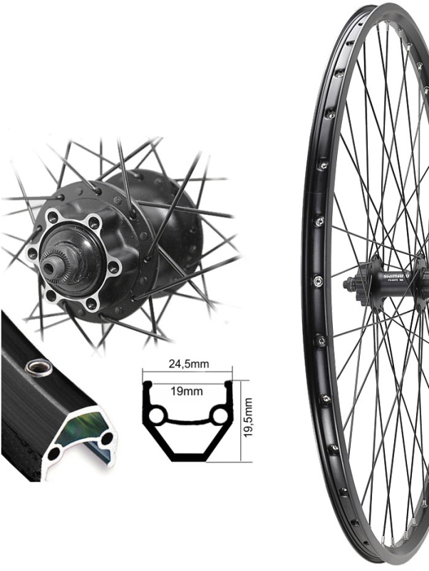 BW 27,5'' V-Rad 19-584 Exal DC19 schwarz Disk mit Ösen 36Loch, Shimano M525 Disk 6-Loch Schnellspann schwarz, Speichen Niro schwarz