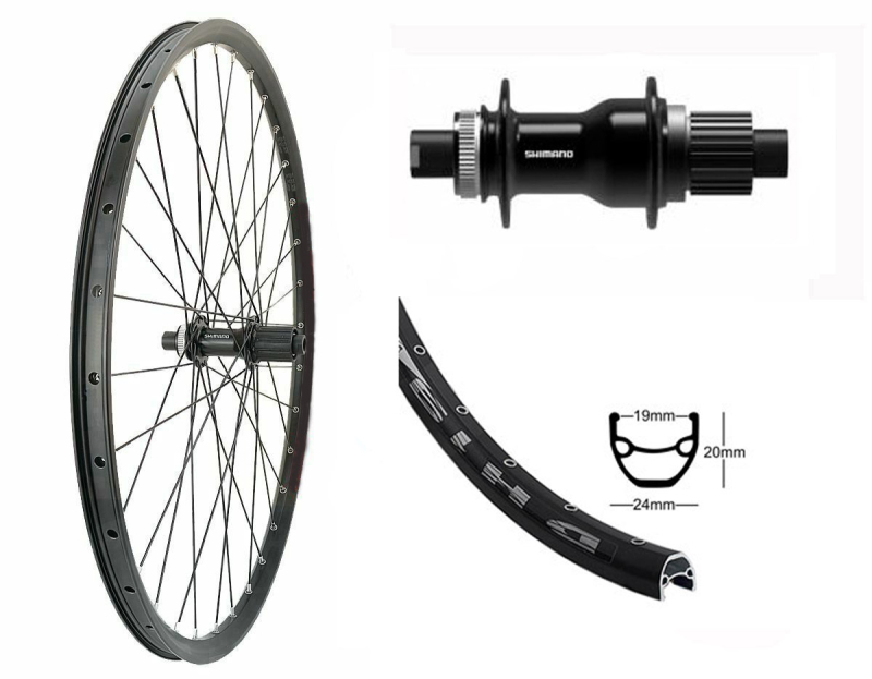 BW 28''H-Rad 19-622 BDCP DH19 schwarz Disk mit Ösen 32Loch, Shimano TC500 Disk Centerlock EBB 142mm für Steckachse 12mm 12fach Microspline schwarz, Speichen Niro schwarz