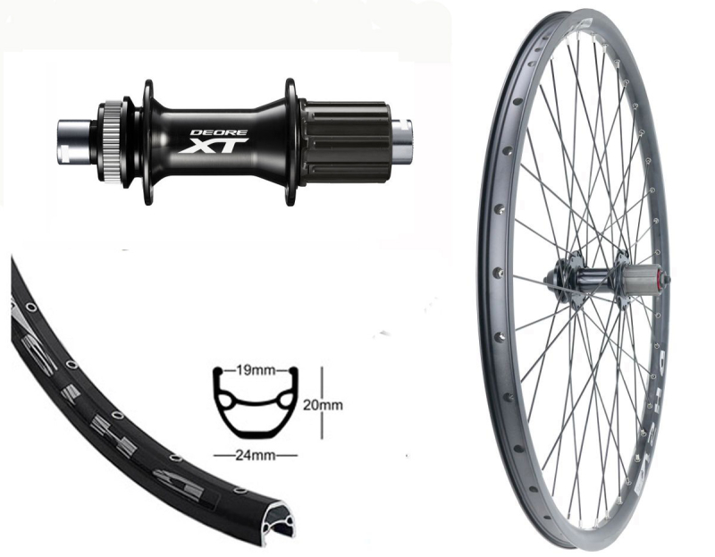 BW 28'' H-Rad 19-622 BDCP DH19 schwarz Disk mit Ösen 32Loch, XT M8010 Disk Centerlock EBB 142mm für Steckachse 12mm 8-11fach Kassette schwarz, Speichen Niro schwarz