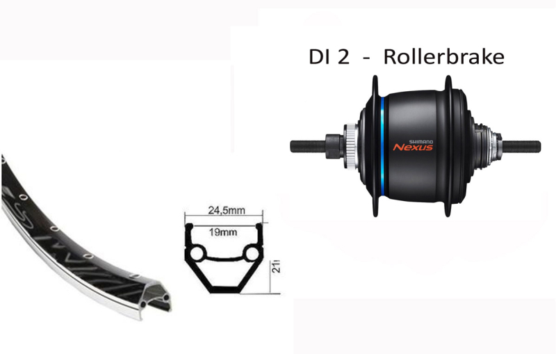 BW 28'' H-Rad 19-622 BDCP DMC19 schwarz mit Ösen 36Loch, Shimano Nexus 8Gang DI2 Freilauf Rollerbrake schwarz ohne Zubehör, Speichen Niro schwarz