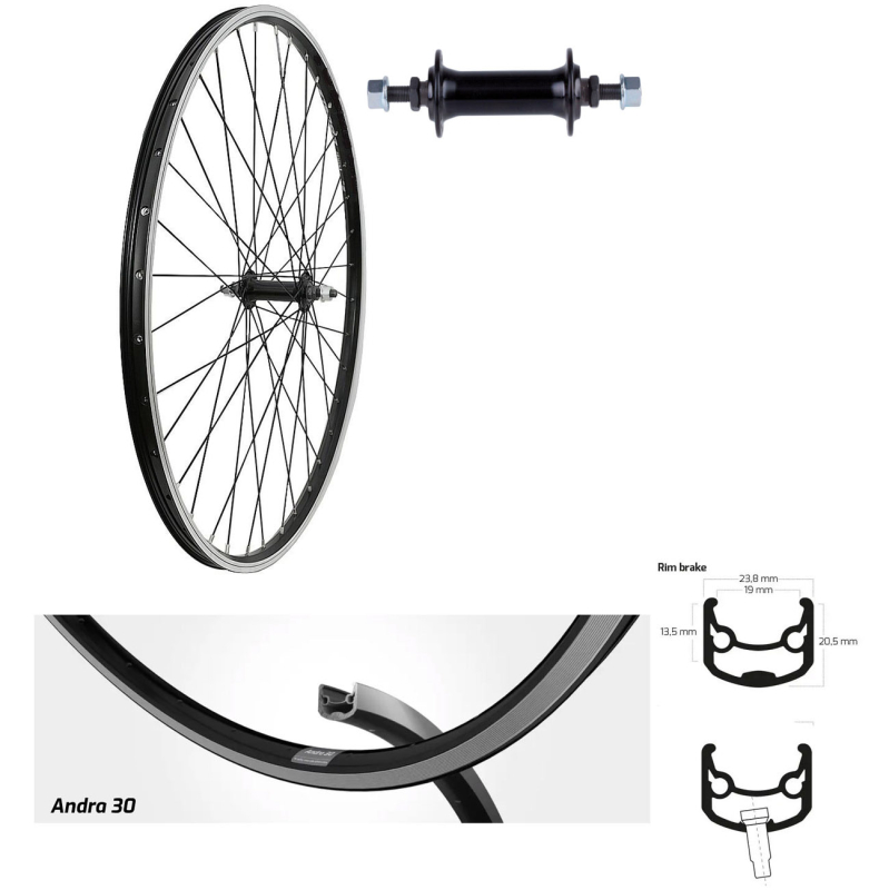 BW 28'' V-Rad 19-622 Ryde Andra30 schwarz seitl.geschliffen ohne Ösen 36Loch, ECO Alu Mutternausführung schwarz, Speichen Niro schwarz