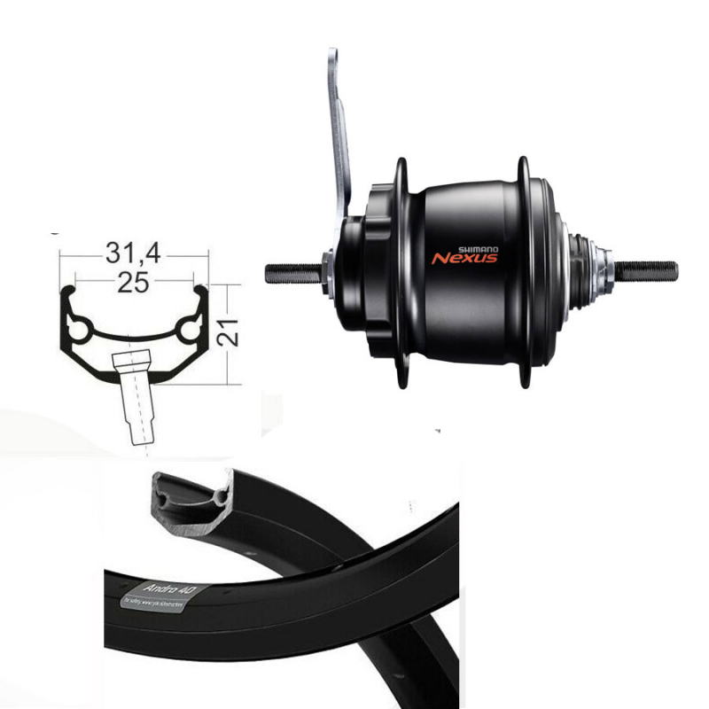 BW 26" H-Rad 25-559 Ryde Andra 40 schwarz Disk ohne Ösen gepunzt 36 Loch,  Shimano Nexus 8-Gang  Rücktritt & Disk 5-Loch schwarz, Speichen ED 2/2,34mm schwarz